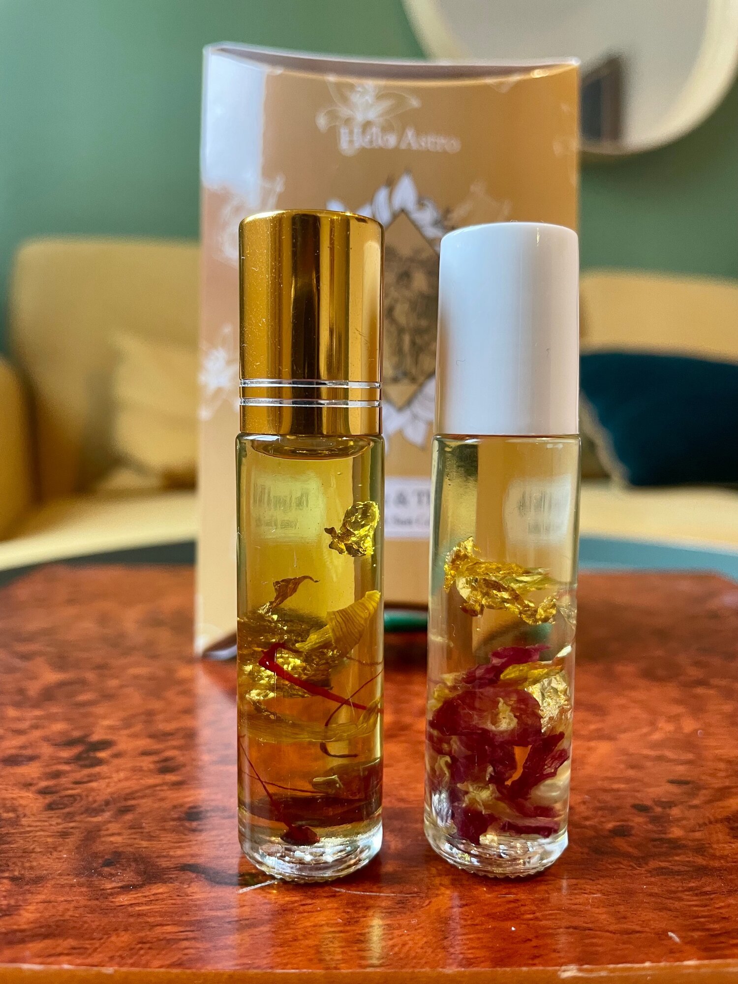 Kaitlin Coppock coined the term “astrological materia”, and created and popularised talismanic products in the form that we know today (anointing oils, body butters…) via Sphere & Sundry. I deeply respect her pioneering of the field and her revolutionary, creative spirit which are at the origin of talismanic products in their curarent form. My talismanic offerings are directly influenced and inspired by her work.